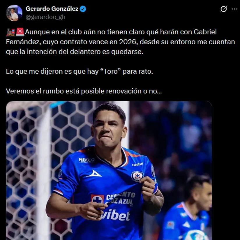 A pesar de que es líder en el Clausura 2026, la directiva cementera empieza a pensar más allá de este semestre. La planificación deportiva de la Máquina está en un momento clave para definir el futuro de varias figuras, y una de las ellas es Gabriel ‘Toro’ Fernández. En medio del Cruz Azul vs. Atl. San Luis, se conoció que hará el delantero titular ante los rumores de posible salida a fin de año.
