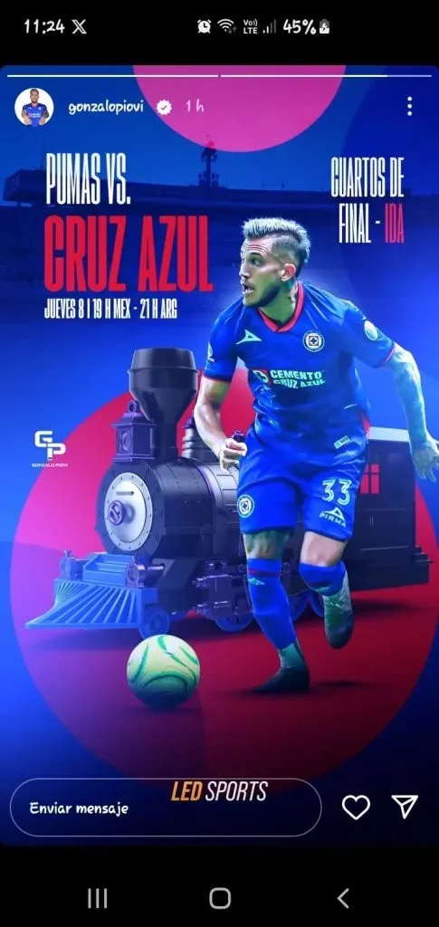 Por lo que esto ilusionó a los fanáticos cruzazulinos, ya que podría ser indicio de que estaría considerado para este partido. Pues justamente la publicación que compartió en sus historias de Instagram era sobre el partido de Ida en donde se le ve a él portando los colores de La Máquina.