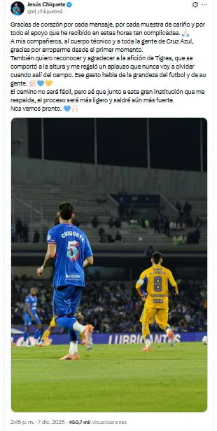 Con información de los amigos de TUDN y Fox Sports, se dio a conocer que Chiquete Orozco fue operado este martes 9 de diciembre 2025 tras revelarse que el diagnóstico final de su lesión. Fue nada más ni nada menos que una luxación en el tobillo derecho y con un DAÑO GRAVE en los ligamentos.