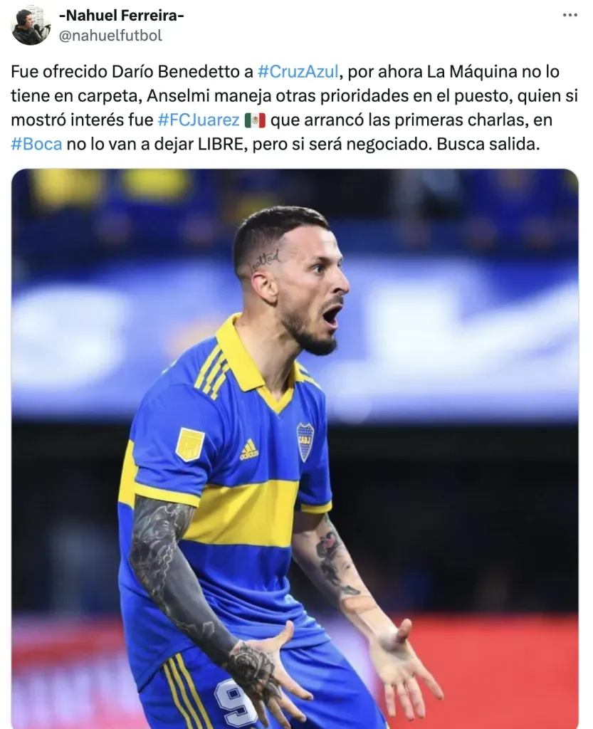 La fuente señala que Boca Juniors sí planea la salida del Pipa Benedetto, razón que facilitaría su arribo a la Liga MX, la cual ya conoce, pues no hay que olvidar que defendió anteriormente a las Águilas del América, por lo que el proceso de adaptación sería más rápido.