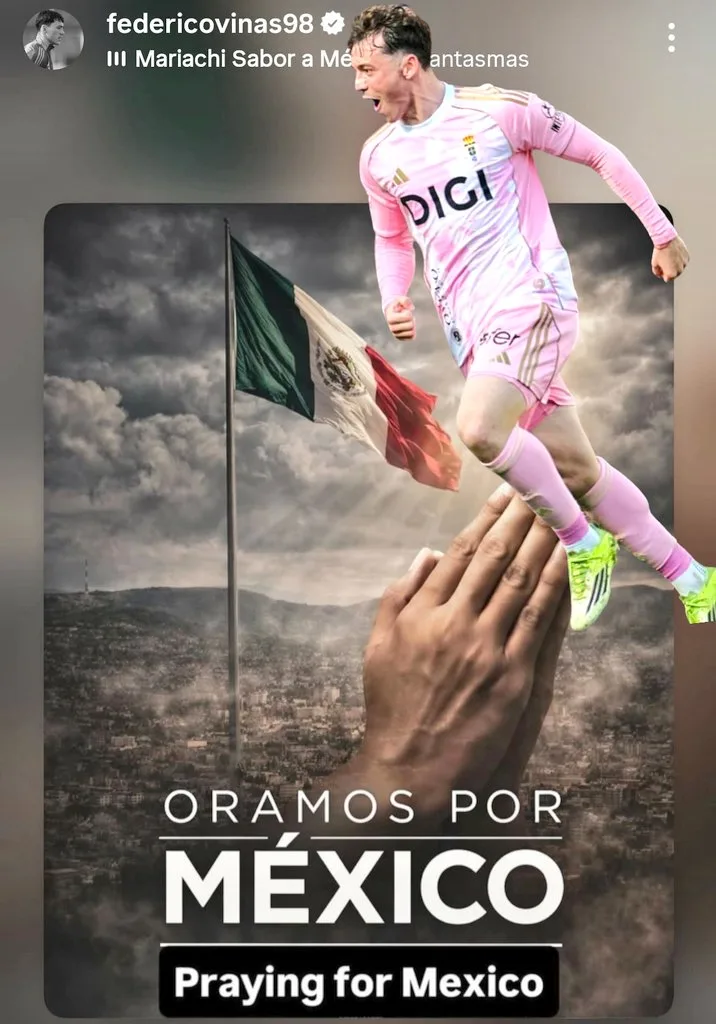 Federico Viñas, a través de cuenta de Instagram, publicó una imagen con la bandera mexicano y unas manos orando. Lo acompañó con una frase en ingles ‘rezando por México’. Una clara muestra de respaldo al país, donde vivió varios años y consiguió un gran nivel deportivo.