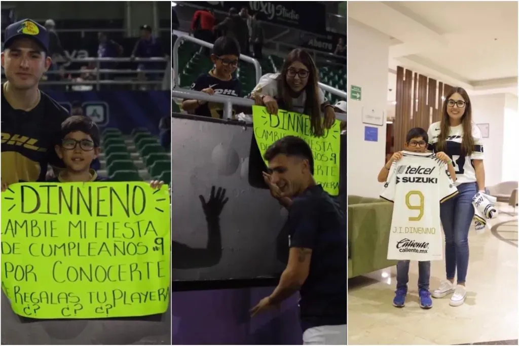 “Dinneno, cambie mi fiesta de cumpleaños #9 por conocerte, ¿me regalas tu playera?”, dicha situación no pasaría desapercibida por el delantero y se acercó a saludar al pequeño aficionado de Pumas.