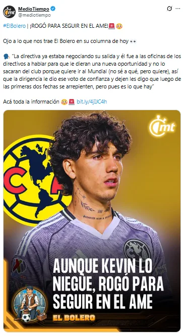 - Revelación: según la columna El Bolero de Mediotiempo, en Coapa ya se arrepienten de haberlo retenido.