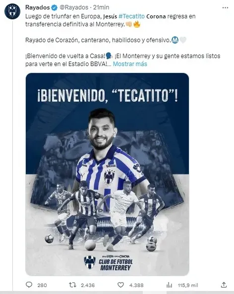 ¡ES OFICIAL! Jesús Manuel ‘Tecatito’ Corona llega a los RAYADOS de Monterrey y ya se arma la CARNITA ASADA.