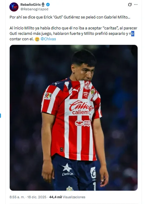 - Gutiérrez le habría hecho gestos y caras al DT de Chivas por esta respuesta, lo que derivó en que pidiera su salida del equipo para el Clausura 2026.