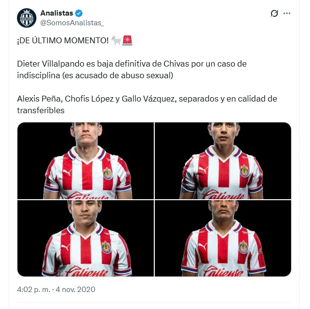 Y lo que derivó en que fuera separado del equipo rojiblanco. Pues ha sido acusado por la violación a una joven durante una fiesta en la que distintos futbolistas profesionales de las Chivas de Guadalajara asistieron. Por eso mismo es que las autoridades decidieron seguir adelante con la denuncia que se interpuso apenas el 24 de octubre de 2020.