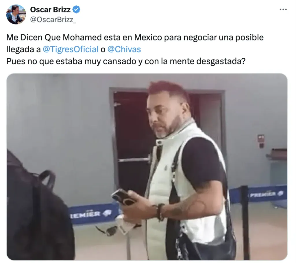 “Me dicen que Mohamed está en México para negociar una posible llegara a Tigres o Chivas. Pues no que estaba muy cansado y con la mente desgastada”