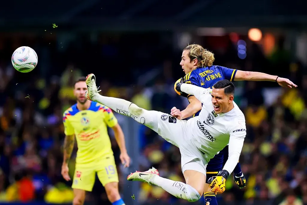 Quien, mientras saltaba para tomar el balón, el canterano del América, Sebastián Córdova no tuvo problema en golpearlo de más en su pelea por el esférico.