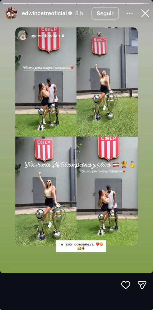 En sus historias de Instagram, Ayelen Sebastián, esposa de Edwuin Cetré, compartió unas fotografías en las que se despide de Estudiantes de La Plata. Las imágenes ya causaron revuelo. Sobre todo por el presunto interés de Cruz Azul por el delantero colombiano.