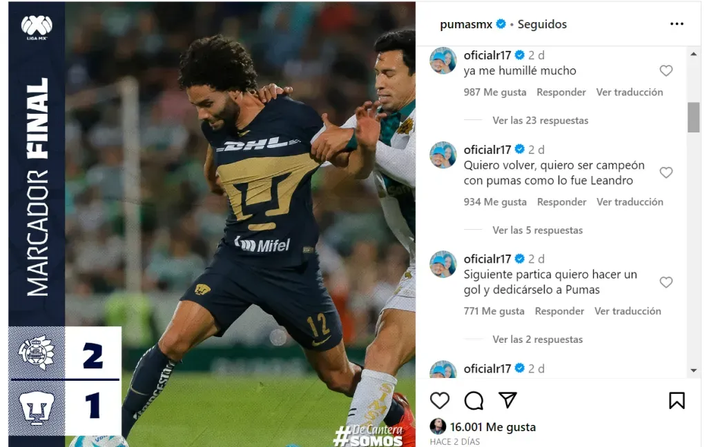 “Los amo Pumas por favor una oportunidad. Quiero volver, quiero ser campeón con Pumas como lo fue Leandro”