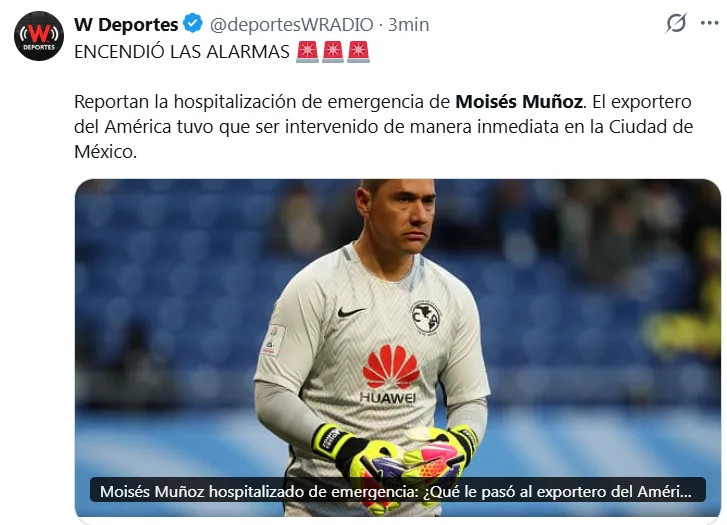 El ex portero del América Moisés Muñoz, fue hospitalizado luego de que padeciera una apendicitis sin embargo, la oportuna intervención de los servicios médicos impidió que esta situación se agravara.