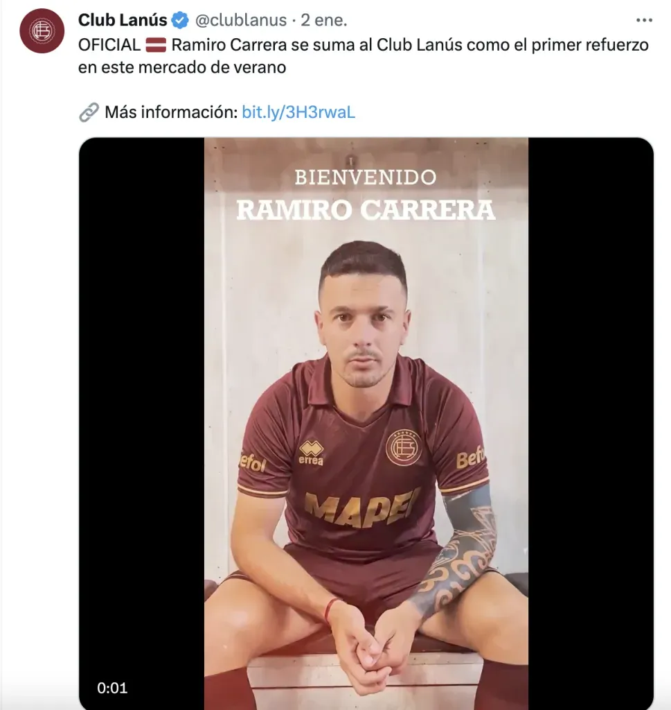 De hecho, Ramiro Carrera ya fue anunciado con su nuevo equipo: Lanús.