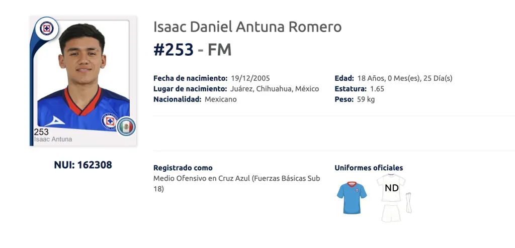 El juvenil de apenas 18 años de edad se desempeña en la media, y para este torneo ocupará el dorsal número 253, así lo registró el equipo cementero en la página oficial de la Liga MX.