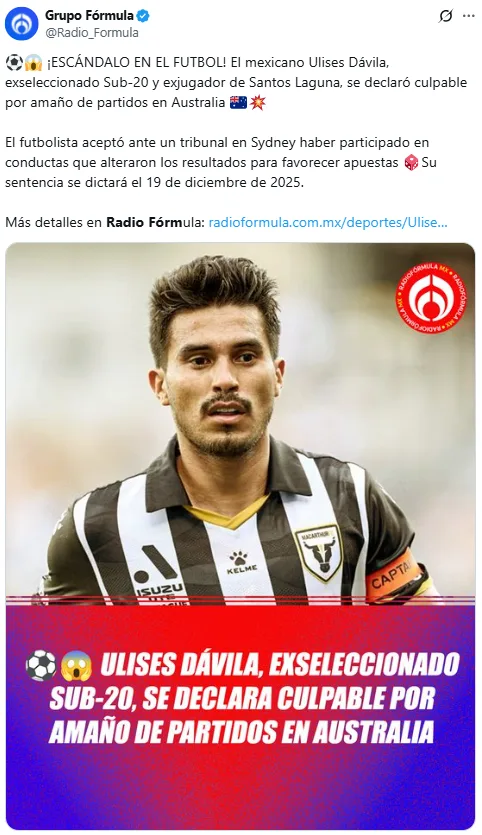 Estamos hablando de Ulises Dávila, quien se formó en Chivas e incluso llegó a jugar un encuentro de Copa Libertadores con el plantel, pero que este día se declaró culpable del delito de amaño de partidos.