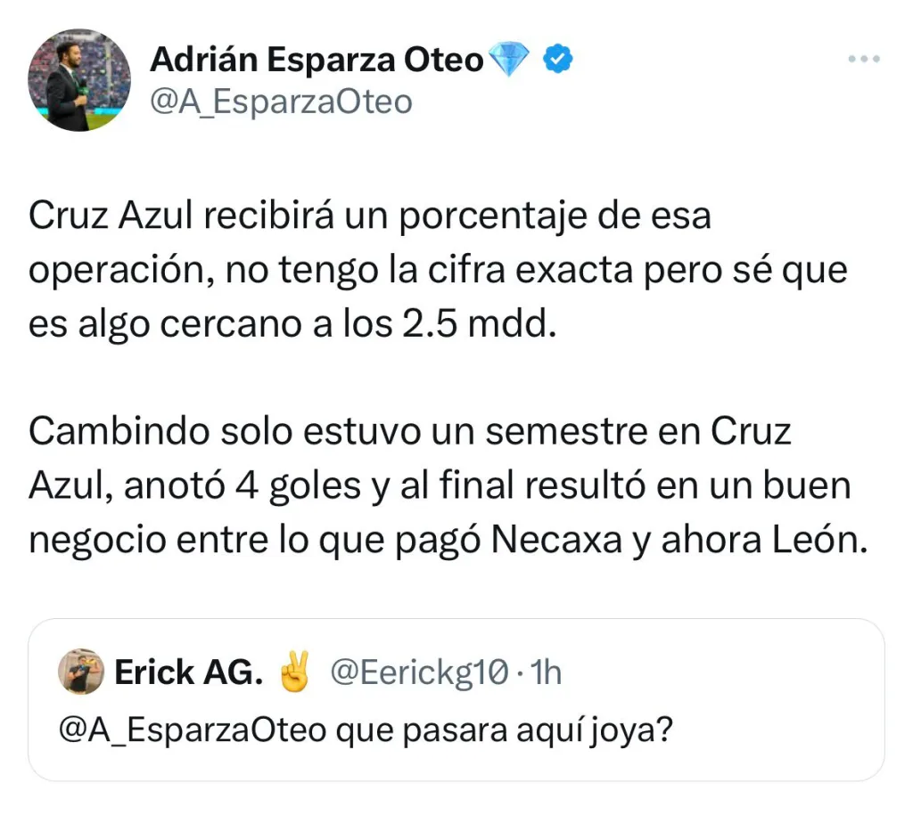 De acuerdo con el periodista Adrián Esparza Oteo, de TUDN, Cruz Azul conservaba un porcentaje de la carta del futbolista. Por lo que se llevaría alrededor de 2.5 millones de dólares por esa transacción.