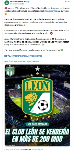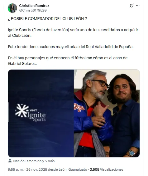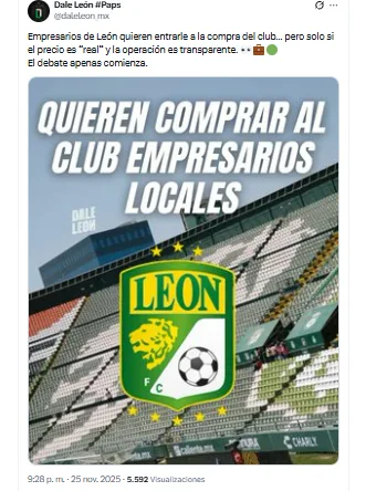 Diversas fuentes señalan que ante la decisión de la directiva de León de poner en venta el conjunto de los Esmeraldas. Se dio a conocer que ya habría algunos compradores interesados en quedarse con el equipo felino rumbo al 2026.
