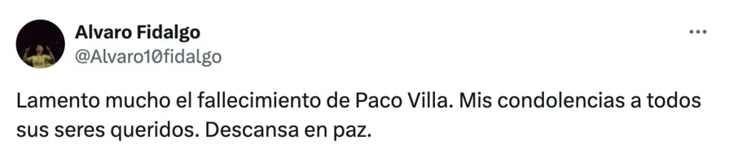 “Lamento mucho el fallecimiento de Paco Villa. Mis condolencias a todos sus seres queridos. Descansa en paz”