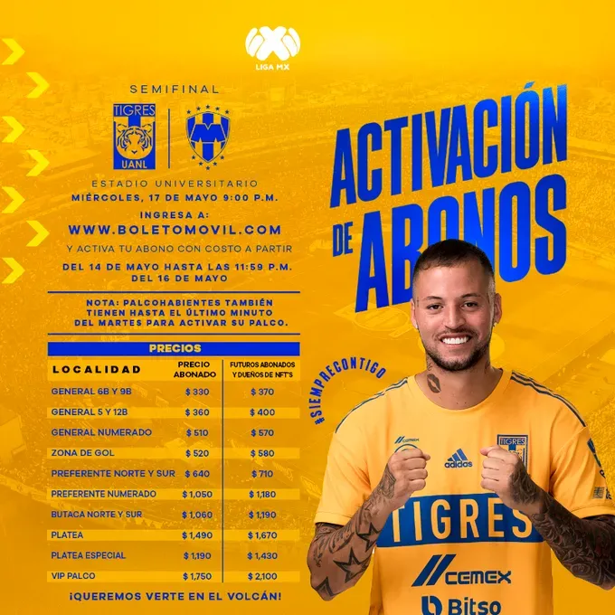 Pongan la lumbre toda la semana porque se viene el Clásico Regio en Semifinales y toda la venta de boletos será una locura tanto para Monterrey como para los Tigres.