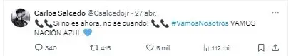 La Máquina, con este resultado, cerró una campaña de ensueño, y por ello Salcedo despertó la ilusión entre los fans celestes al postear: “¡Si no es ahora, no sé cuándo! Vamos Nosotros, VAMOS NACIÓN AZUL”. Publicación que ha tenido un gran alcance entre los fanáticos cementeros, pues esto emocionó a los aficionados al ser señal de que van a pelear por el Campeonato hasta la muerte.