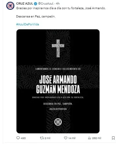 Esto fue no por falta de disposición de La Máquina, sino por el estado de salud en el que se encontraba José Armando. Lo que le impidió viajar para cumplir su sueño, pero ante esto, los cruzazulinos se mantuvieron pendientes de él, y le enviaron mensajes y de más detalles para que supiera que el club estaba apoyándolo en estos difíciles momentos.