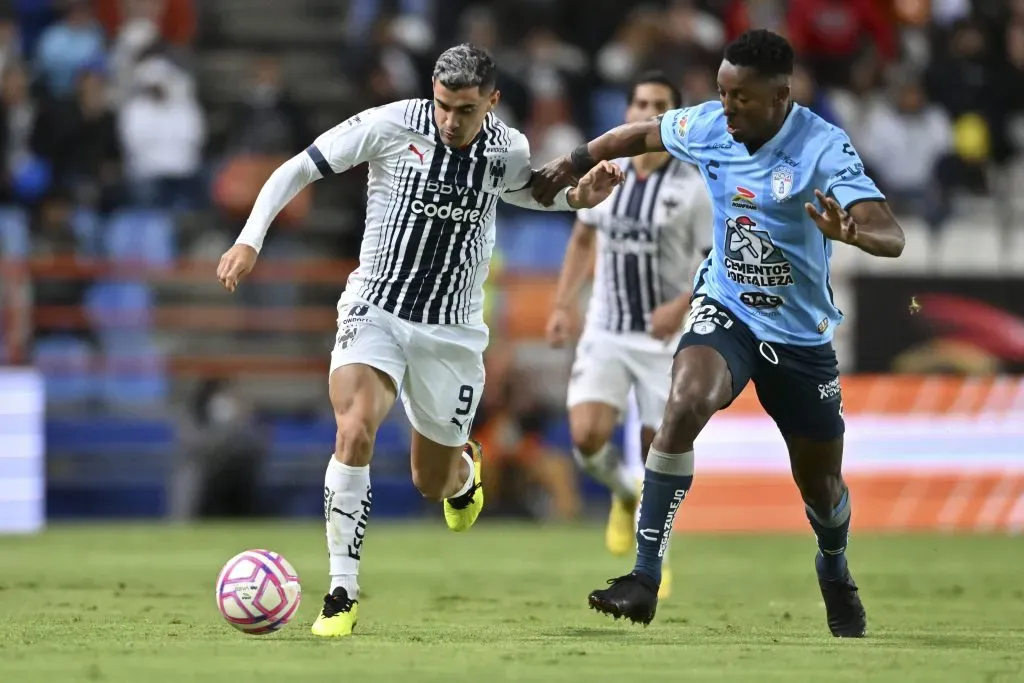 Pachuca, Hidalgo, 20 de octubre de 2022. 9mt y Oscar Murillo durante el partido de ida de las Semifinales del torneo Apertura 2022 de la Liga BBVA MX, entre los Tuzos del Pachuca y Rayados de Monterrey, celebrado en el estadio Hidalgo. Foto: Imago7/Etzel Espinosa