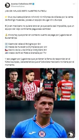 El portal mencionado comparó la situación de Huescas con jugadores más consolidados en Sudamérica, por lo que ven imposible que los equipos europeos prefieran al mexicano antes que a uno de estos jugadores. Como es el caso de Arezoo del River Plate que apunto a irse al Granada por 7 millones de dólares. O Hezze del Huracán al Olympiacos por 4 millones de dólares.
