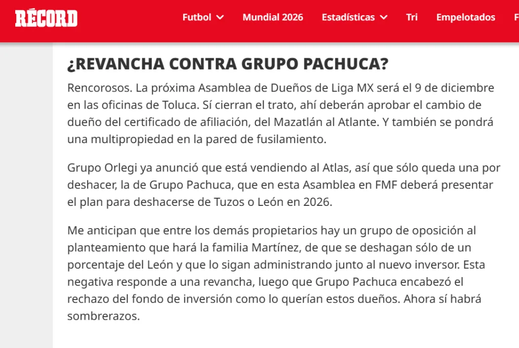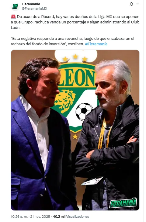Ante esto, en la próxima Asamblea de Dueños de Liga MX que será el próximo 9 de diciembre en las oficinas de la Federación Mexicana de Futbol en Toluca. Se confesó que ya habría posturas claras ante la oferta de León, y en su mayoría sería una oposición clara a esta oferta.