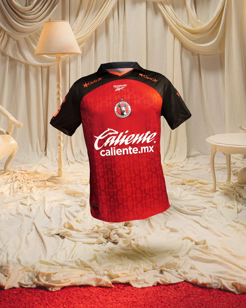 El jersey local, con el característico rojo y negro, está inspirado en la unión que existe entre el club y su afición. Además cuenta con un patrón en forma de cadena de ADN que fusiona la letra “X” con la iniciales “TJ”.