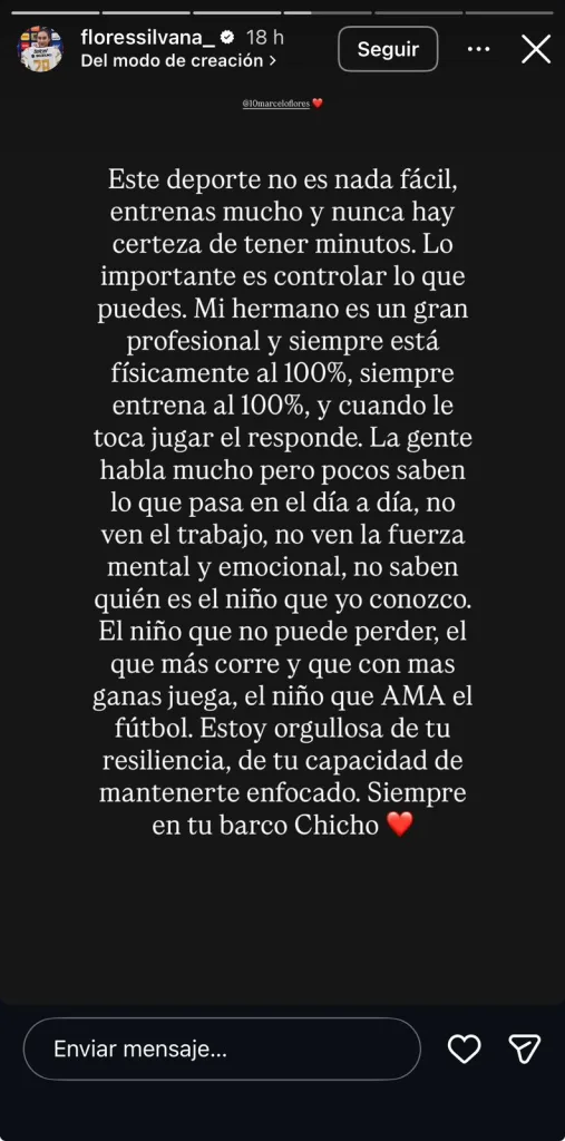 La jugadora también lanzó un mensaje directo a quienes critican a Marcelo Flores sin conocer su preparación ni todo lo que enfrenta fuera de la cancha, y destacó su resiliencia y fortaleza mental.