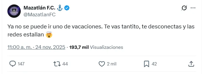 Fue por medio de sus redes sociales, donde Mazatlán decidió lanzar un enigmático mensaje acerca de los rumores que señalan que será vendido. Esto con el objetivo de que su actual dueño, Ricardo Salinas Pliego busque la presidencia de México en 2030.