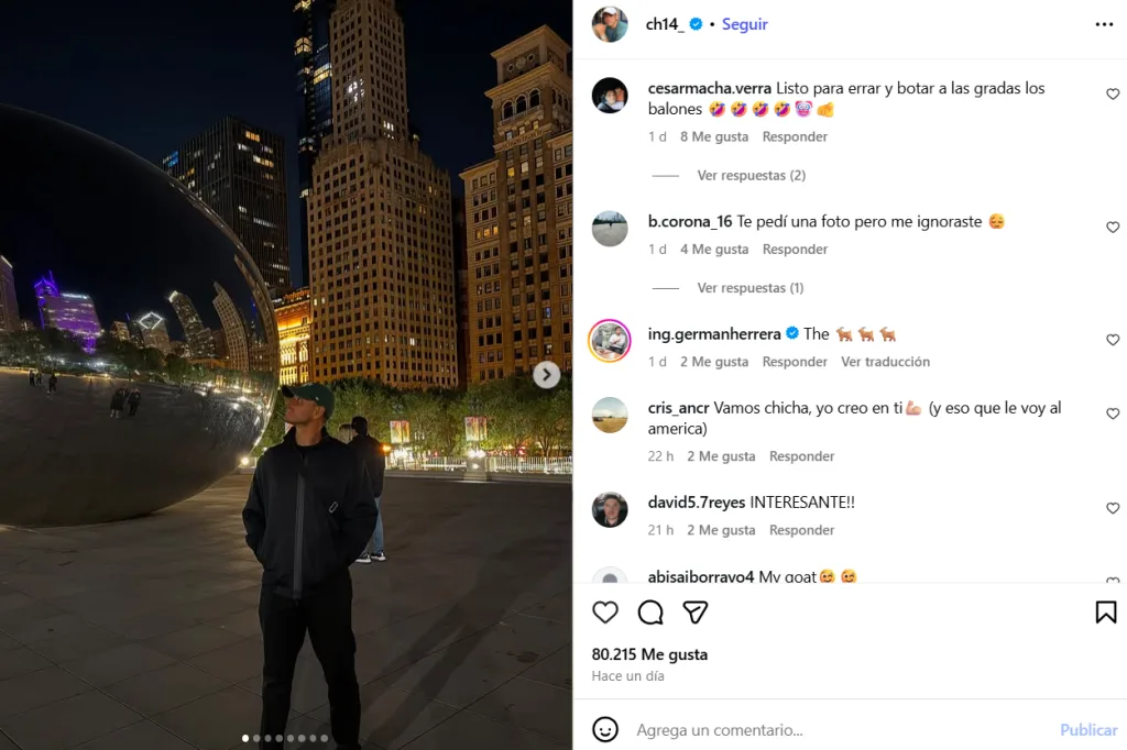 En las imágenes de Javier Hernández Balcázar, se puede ver cómo el jugador también está entrenando a la par del equipo, pero también aparece sentado comiendo en un restaurante, o de paseo por Chicago, en los Estados Unidos.