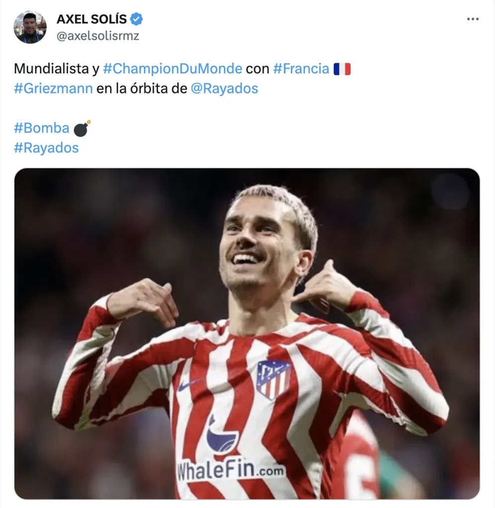 Sin embargo, parece que nada está cerrado aún para los Rayados, pues de acuerdo a la información del periodista Axel Solís, tendrían un as bajo la manga, directito del Atlético de Madrid.