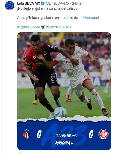 ¡NADA PARA NADIE! El Atlas y Toluca no se hicieron daño en el estadio Jalisco y se reparten puntos, en el duelo de la Jornada 6 de la Liga MX.