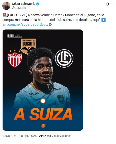 - Los propietarios de Necaxa cerraron el acuerdo con Lugano y firmarán al jugador por 5 años.