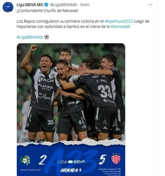 Los Rayos del Necaxa lograron su primera VICTORIA en lo que va del torneo APERTURA 2023 por ÉPICA GOLEADA ante Santos Laguna.