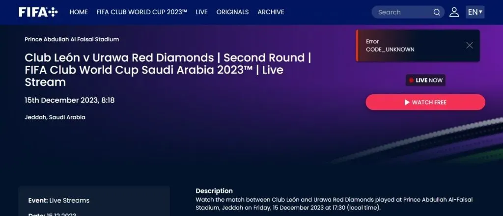 En especial del partido de los Esmeraldas ante el Urawa Reds, donde la transmisión tuvo diversas fallas de transmisión.