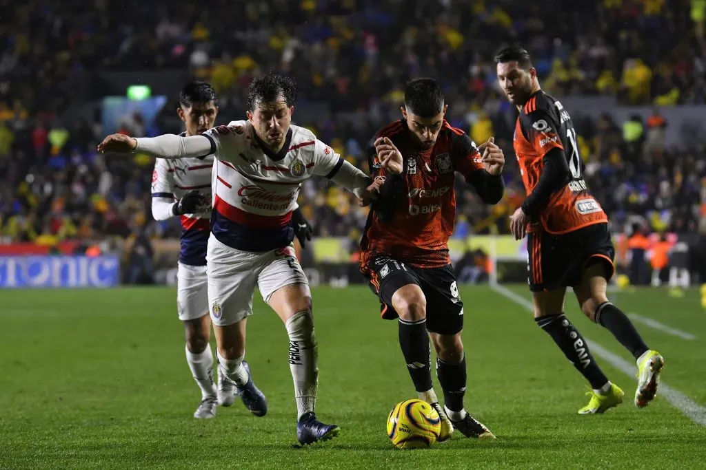 Tigres y Chivas durante el partido correspondiente a la jornada 2 del torneo Clausura 2024. Foto/ Imago7