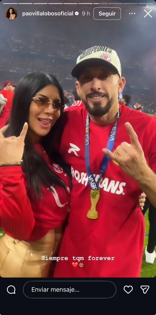 Previo a la Final de Vuelta entre Toluca y Tigres, la conductora de televisión Paola Villalobos, a quien se le ha relacionado con Héctor Herrera, dejó ver en sus historias de Instagram que se encontraba en el estadio Nemesio Diez. La famosa se mostró en las tribunas, portando una camiseta de los Diablos.
