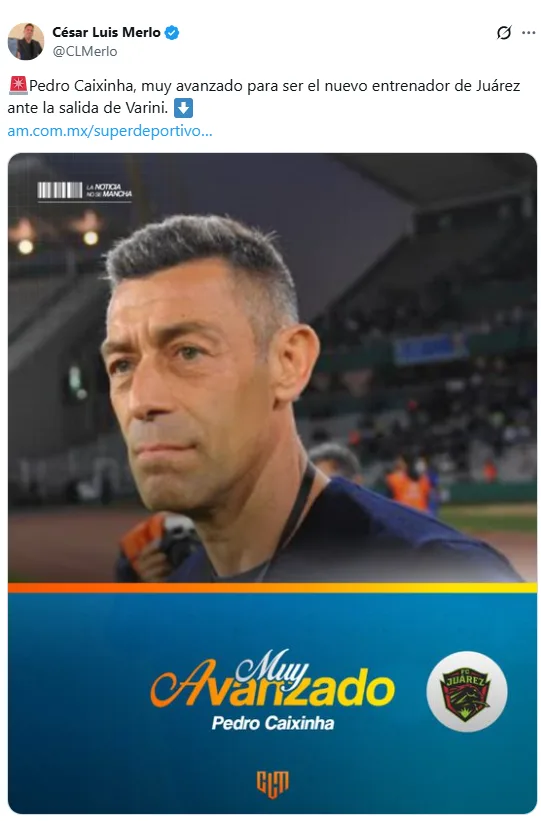 Según lo que reporta César Luis Merlo, las negociaciones con el timonel ya van bastante avanzadas y ya solo es cosa de unos detalles, para que este se convierta en el nuevo director técnico de Juárez.