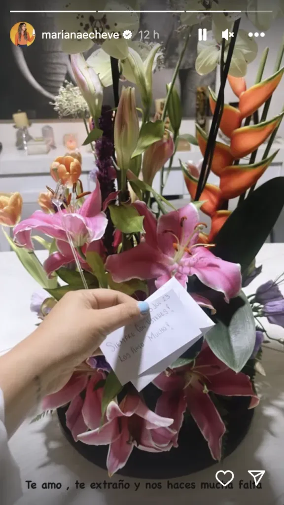 Sin embargo, Jiménez busca la manera de apoyar a su pareja, pues durante las últimas horas, Mariana Echeverría publicó una historia de unas rosas que le envió, con la leyenda: “Siempre con ustedes, los amo mucho“, a lo que ella respondió: “Te amo, te extraño y nos haces mucha falta”.