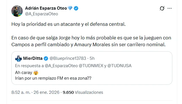 Ante esto, Cruz Azul ha tomado con seriedad el tema y habría decidido tomar cartas en el asunto. Ya que además de estar negociando la salida de Jorge Sánchez, también estaría buscando quiénes podrían suplir al exfutbolista del América. Por lo que, según las fuentes señaladas, sería probable que Campos jugara a perfil cambiado y Amaury Morales sin ser carrilero nominal. Pues tendrían como prioridad un atacante y defensa central.