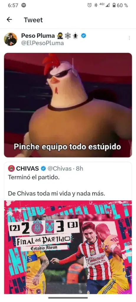 Las Chivas Rayadas de Guadalajara pasaron del heroísmo a la burla en cuestión de minutos, y ahora hasta el cantante Peso Pluma se burló del subcampeón del futbol mexicano.
