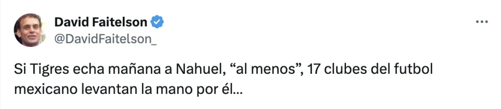 “Si Tigres echa mañana a Nahuel, “al menos”, 17 clubes del futbol mexicano levantan la mano por él”
