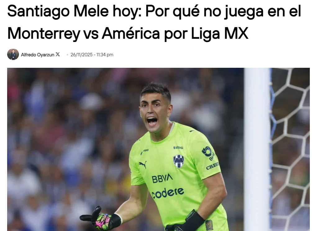 ¿Por qué Santiago Mele no estuvo con Monterrey vs América?