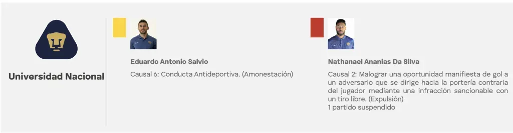 Y precisamente para dicho encuentro, el cuadro de la UNAM tendrá una sensible baja en la zaga, pues no podrá contar con Nathan Silva, quien se fue expulsado en el partido anterior, por lo que la Comisión Disciplinaria determinó la sanción a cumplir.