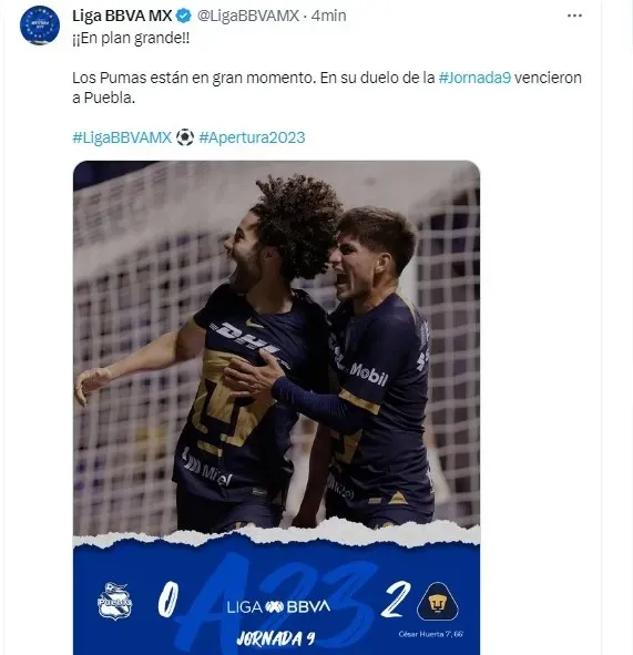 De esta manera la escuadra universitaria llega a 15 puntos en el torneo Apertura 2023; mientras los camoteros se quedan en el penúltimo lugar, con solo 5 puntos