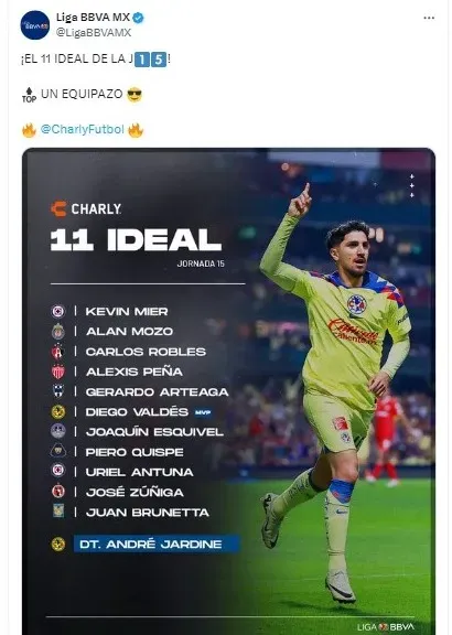 Como cada semana, la liga mexicana publicó los jugadores que fueron más destacados de cada jornada, y esta vez el peruano brilló por ser tomado en cuenta. Resulta que la actuación que tuvo en la fecha 15 le dio a Quispe la oportunidad de ser incluido en el once ideal de la jornada.