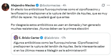 El especialista en veterinaria comentó esta situación y recibió el aval de otros profesionales. Alejandro Macias, doctor, agregó que este tipo de medicamentos son contraproducentes para los jugadores. “No quedará igual que antes, por desgracia estos antibióticos se usan en demasía y generan muchas resistencias. Nunca deben ser la primera elección”, expuso también en X.