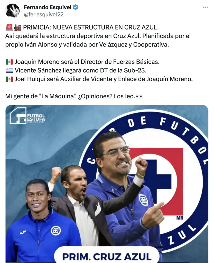 Joaquín Moreno no saldrá de la institución y ahora fungirá como director de Fuerzas Básicas. El uruguayo Vicente Sánchez llegará como nuevo director técnico del equipo Sub 23.