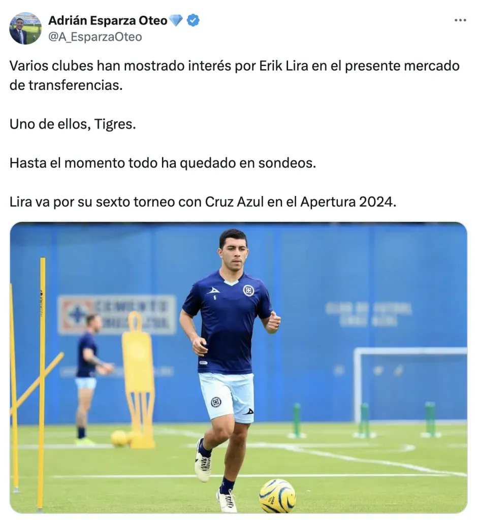 De acuerdo con la información del periodista de TUDN, Adrián Esparza, sería Erik Lira quien estaría llamando la atención de los Tigres de la UANL, aunque no sería el único equipo que estaría interesado en unirlo a sus filas, sino habría otros más, aunque sus nombres no fueron revelados.